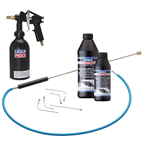 Cleaning occurs with a DPF pressurized tank spray gun and the specially developed DPF-Probe with 5 interchangeable tips.
